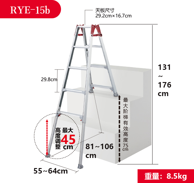 RYE-b 新版<臺階用>伸縮人字梯兼直梯