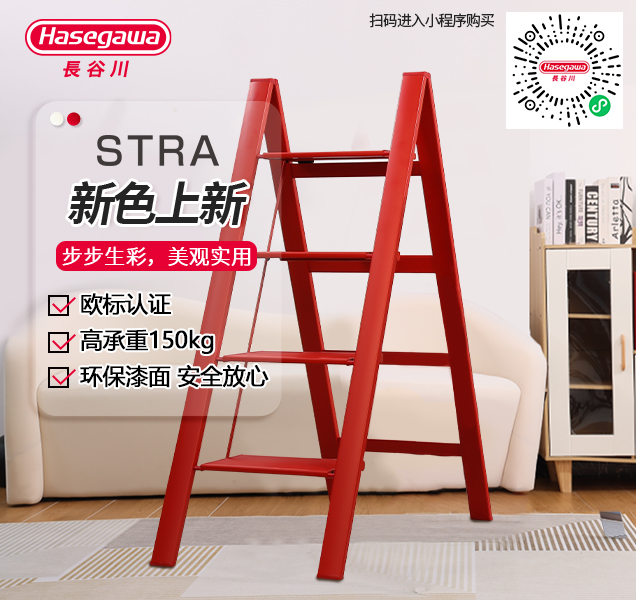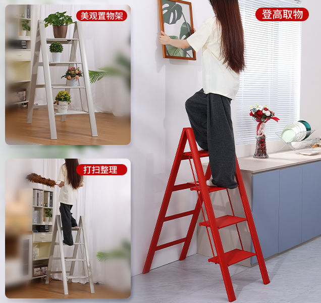 針對小戶型家庭無法很好收納梯具的問題,進(jìn)行了產(chǎn)品革新。 梯子的跨寬與常用家用梯相比距離更短,展開時(shí)不占空間,適配多種居家環(huán)境。