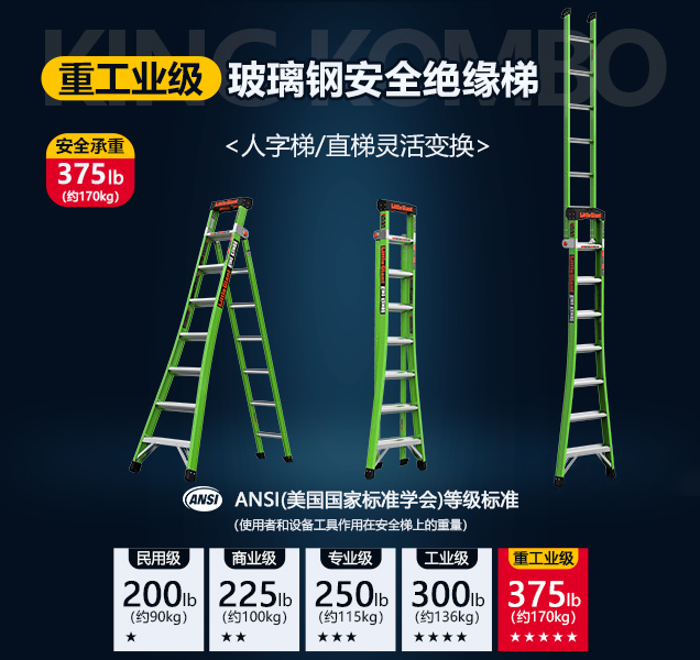 KING KOMBO 美國LittleGiant多功能折疊玻璃鋼絕緣加厚工程直梯人字梯