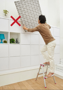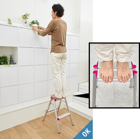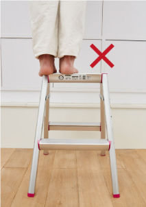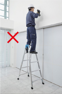 - 在三腳梯上進(jìn)行作業(yè)時(shí),請(qǐng)站在從天板開始數(shù)第四節(jié)(180cm以下的型號(hào)則為第三節(jié))以下的踏板上,身體輕靠天板和上層踏板,在平穩(wěn)的狀態(tài)下操作。