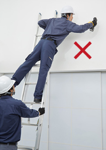 - 在梯子和屋頂之間來回移動(dòng)時(shí),梯子會(huì)搖晃而不穩(wěn)定。請(qǐng)務(wù)必讓輔助人員扶穩(wěn)梯子,保持其穩(wěn)定狀態(tài)。