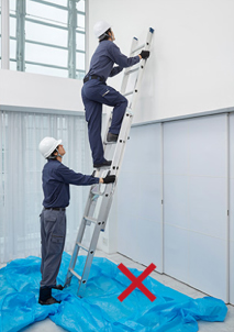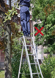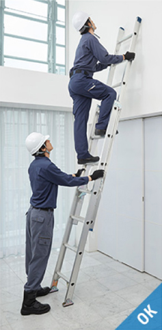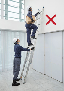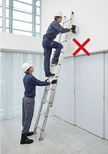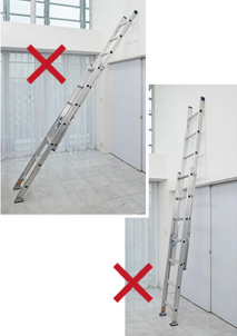 - 將梯子倚靠屋頂?shù)葓鏊鶗r(shí),梯子和建筑物的最佳接觸點(diǎn)為踏板從上往下數(shù)第2~3級(jí)的位置。