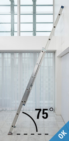 - 梯子的倚靠角度約為75度。請(qǐng)務(wù)必在有人輔助扶穩(wěn)梯子的情況下作業(yè)。